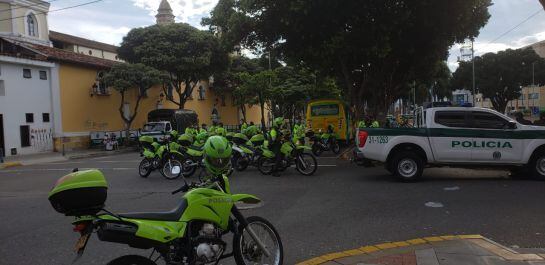 Caracol Radio constató que los vehículos usados en la caravana de la mañana de este martes fueron estacionados en la calle 36 entre carreras 12 y 11, en sentido oriente occidente. De hecho, los carros que van hacia el parque García Rovira deben doblar a la derecha, cerca del Palacio de Justicia donde hay presencia de varios hombres de la Policía Metropolitana.