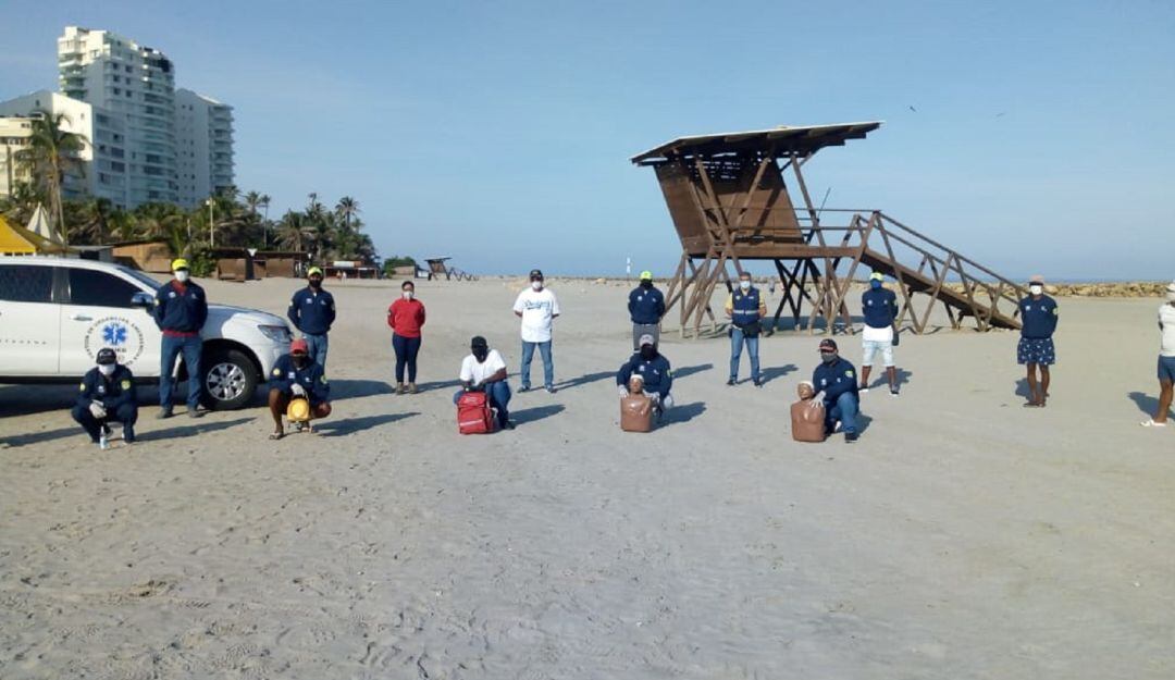 Con el objetivo de estar preparados para cualquier emergencia médica que se registre durante la reactivación de las playas, los salvavidas de Cartagena son capacitados en atención básica de salud por el Centro Regulador de Urgencias y Emergencias (CRUE).