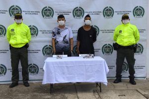 “Los sujetos tienen antecedentes judiciales por el delito de porte ilegal de arma de fuego y son conocidos con los alias de “Pillo y Duvián”. Estas personas pertenecerían a un grupo de delincuencia común organizado que delinque en este municipio”, reportó el coronel Martínez.