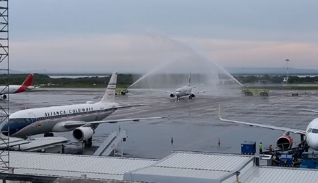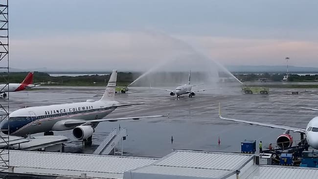 Con máquinas de bomberos el Aeropuerto Internacional Rafael Núñez le dio la bienvenida a los viajeros, quienes llegan a esta capital, tras cerca de seis meses sin poderlo hacer a causa de la pandemia.
