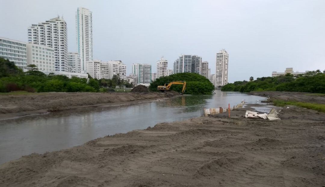 Tras la puesta en funcionamiento del equipo (producto de una decisión judicial), maquinaria amarilla de la Gobernación de Bolívar, ha continuado la ampliación del canal que permite el intercambio de agua dulce con el mar.
