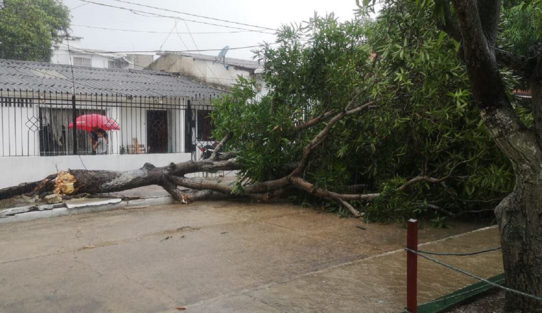 Fuertes lluvias registradas hacia la 1:00 de la tarde de este domingo 27 de septiembre dejan estragos en el sur de Barranquilla. El aguacero estuvo acompañado de fuertes brisas que tumbaron árboles y redes eléctricas. El barrio El Carmen fue uno de los más afectados con un balance preliminar de 10 familias damnificadas.