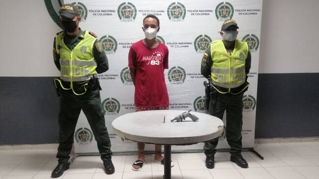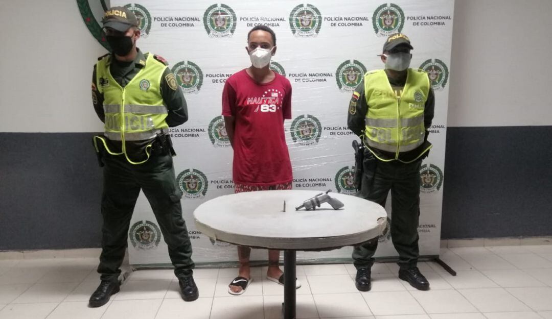 Durante un este procedimiento de registro policías de la Metropolitana capturan en flagrancia a Fabián Eduardo Ramírez Navarro, de 21 años, oriundo de Cartagena, quien fue sorprendido portando un arma de fuego, fabricación hechiza, con un cartucho sin percutir.