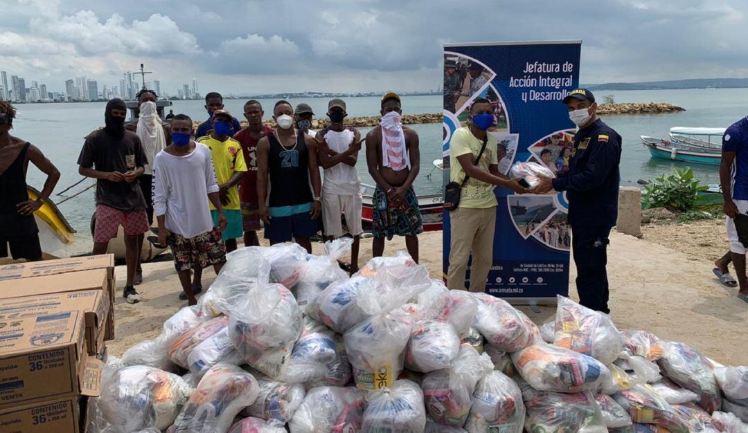 La Armada Nacional en coordinación con la Alcaldía de Cartagena a través del Departamento Administrativo Distrital de Salud (DADIS), Corpoturismo y la Gestora Social María Angélica Klee; la Fundación Tierra Grata y la Fundación AGM “Huellas de Piedra”, entregaron 80.000 litros de agua, 450 cajas de bienestarina líquida y 300 mercados con alimentos de la canasta básica familiar, contribuyendo a una alimentación saludable a todas las familias de la isla de Tierrabomba.