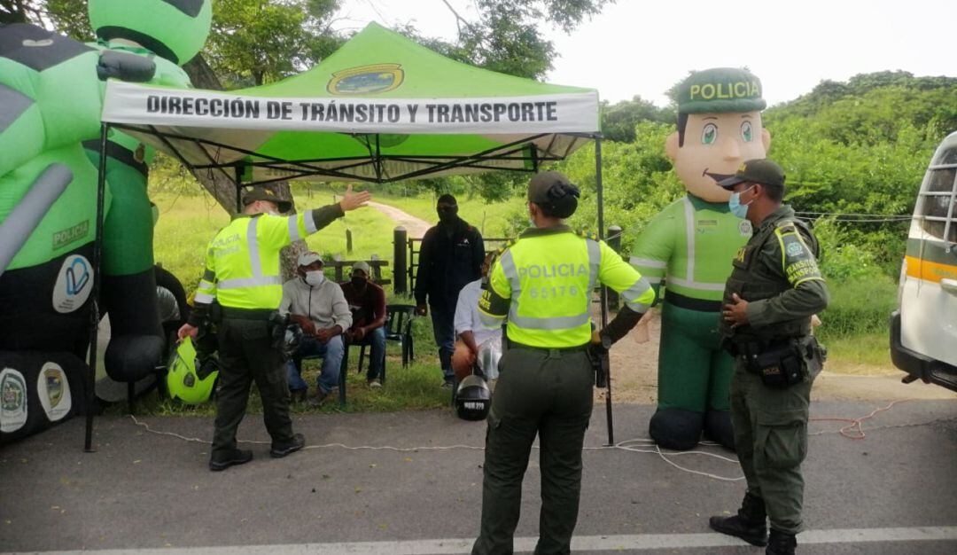 En el sector La Pradera del municipio de Calamar, un grupo de policías instaló un puesto de control con el objetivo de impartir entre los motociclistas que transitaran por el lugar una serie de recomendaciones sobre seguridad vial.