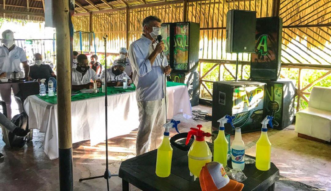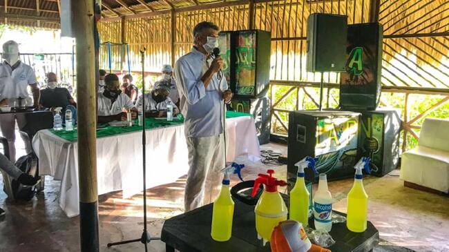 El secretario del Interior de Cartagena, David Múnera, en compañía de funcionarios de esta dependencia, se reunió en La Boquilla con la comunidad que trabaja en la playa, y que debido a la pandemia de la COVID-19, aún no hace parte de la implementación de los planes piloto de reapertura.