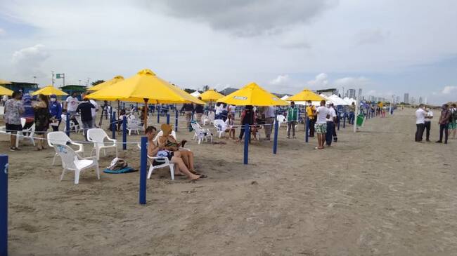 “Respetamos el derecho como está concebido en la Constitución Nacional que las playas son de uso público y no hay ninguna medida que obliga a ningún cartagenero ni visitante a tener que pagar, no se está privatizando nada ni dándole privilegios a unos, por encima de otros, pero es importante recordar que de acuerdo a los criterios del Programa Ambiental Bandera Azul, en esta playa no se permite el ingreso ni venta de alimentos”, agregó Múnera Cavadía.