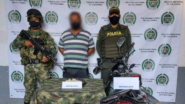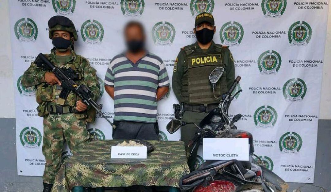 El capturado, la sustancia incautada y la motocicleta inmovilizada fueron puestas a disposición de la autoridad competente.