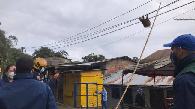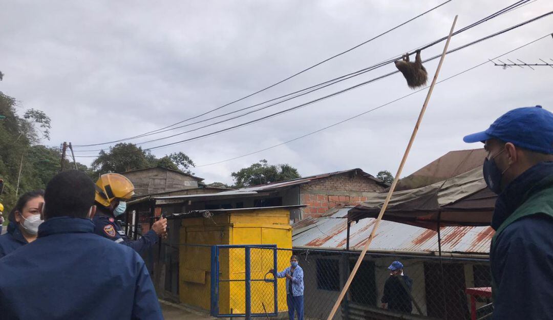 Rescatan a un perezoso que colgaba en cuerdas de energía del km 18