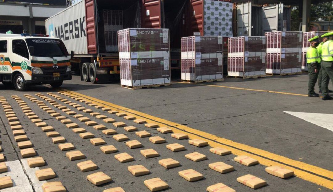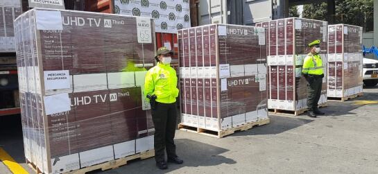 En total fueron recuperados 852 televisores de 60 y 75 pulgadas, que eran transportados en cinco contenedores desde el puerto de Buenaventura con destino a Bogotá.