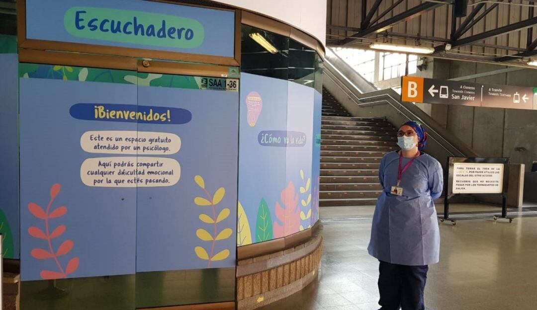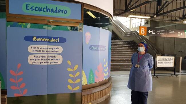 Esta estrategia propone 16 acciones encaminadas a la concientización y atención de la salud mental. Según Valentina Henao, profesional de Gestión Social y Cultural del Metro, durante el mes se tendrán diferentes actividades, entre ellas El Escuchadero. Este espacio se instaló en la estación San Antonio, en donde una profesional en psicología escuchará a los ciudadanos que quieran acceder al servicio.