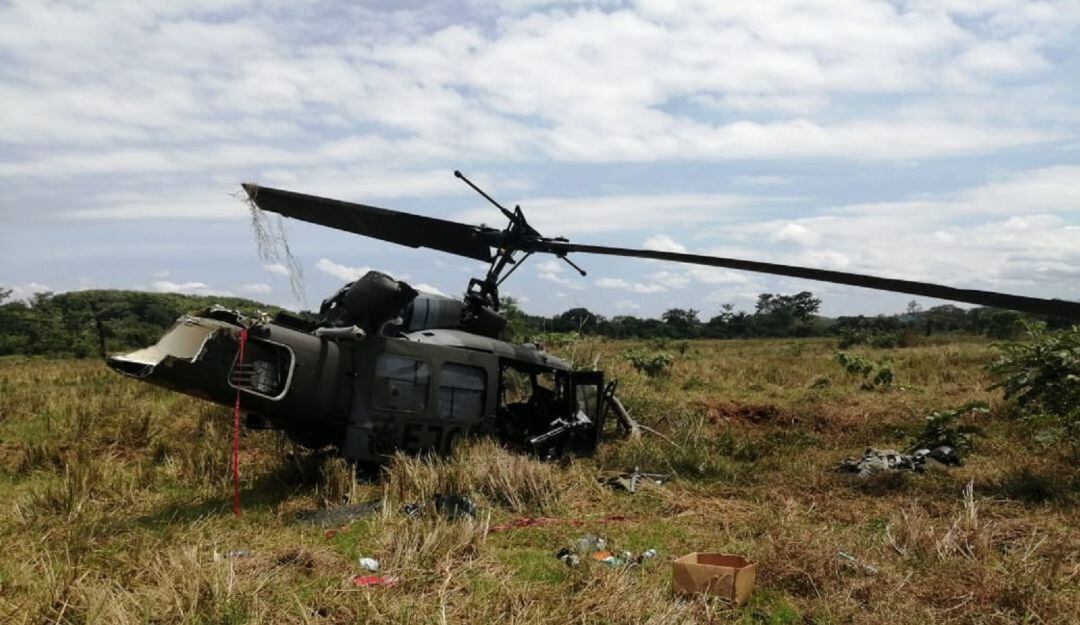 Según el reporte preliminar del Mayor General Juan Carlos Ramírez, comandante de la Séptima División, se trata de un helicóptero de escolta. La tripulación, integrada por 4 militares fue trasladada a un centro asistencial en Montería, donde evaluarán su estado de salud.