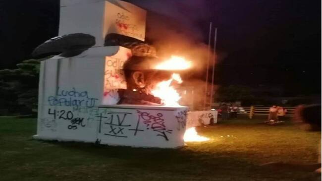 En la víspera del cumpleaños de Ibagué, desconocidos decidieron prenderle fuego al monumento en honor al fundador de la ciudad, capitán Andrés López de Galarza en el sector del viaducto del Sena.