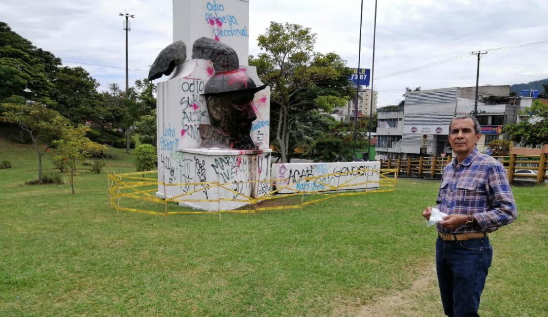 Hace 32 años el escultor Enrique Saldaña creó la efigie del fundador de la ciudad de Ibagué, Andrés López de Galarza la cual ha sido objeto de vandalismo como ocurrió este lunes festivo.