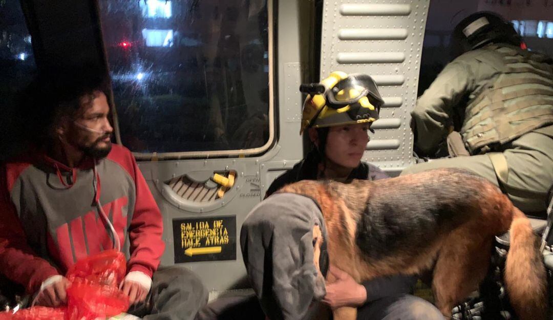 El proceso de rescate se hizo con una grúa de rescate que descendió de un helicóptero UH-60 'Ángel', con un rescatista de personal a bordo, fueron evacuadas tres personas y un canino, que se encontraban adelantando trabajos de campo en el sector conocido como La Verruga, en el norte del Valle de Aburrá.