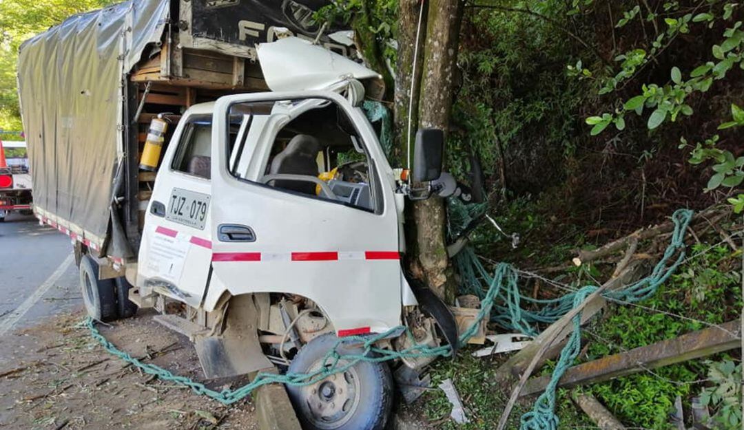 Según el reporte de las autoridades un camión de doble cabina perteneciente a la empresa Ingeomega s.a.s, contratista de las Empresas Públicas de Medellín, se quedó sin frenos y chocó con un costado de la vía.