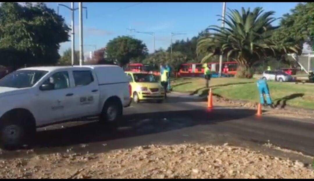 El daño imprevisto de un tubo de 24 pulgadas hizo que el agua saliera como si fuera una fuente en medio de la autopista norte con calle 147, el agua comenzó a recorrer las calles y por la fuerza con la que viajaba ingreso a los edificios cercanos.