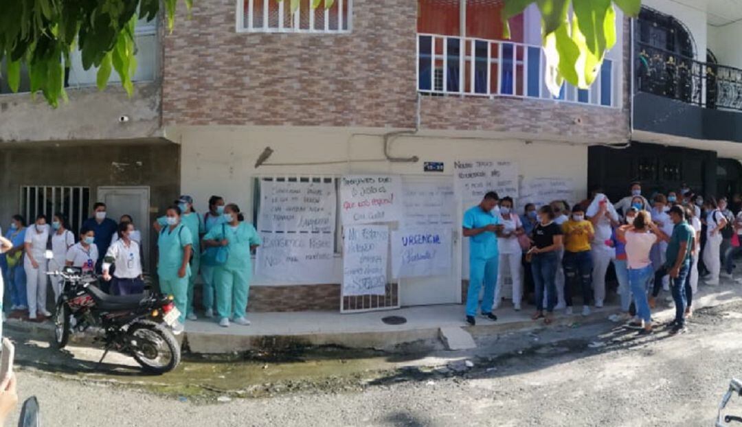 80 de los empleados de este centro asistencial no solo cesaron sus labores sino que también llegaron hasta la sede de la cooperativa Sintrasant para protestar con pancartas y arengas por los retrasos en los salarios, lo que ya se hace insostenible porque como cualquier ciudadano, las facturas siguen llegando a sus casas.