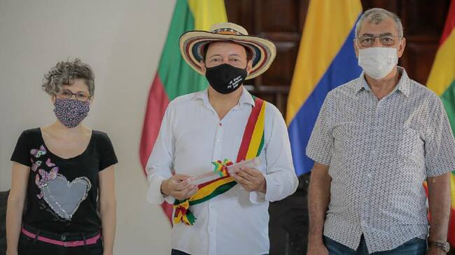 El alcalde de Cartagena, William Dau Chamat, condecoró con la Medalla Cívica al acordeonero profesional Manuel Vega Vásquez, elegido Rey del Festival de la Leyenda Vallenata 2020, en su versión 53.