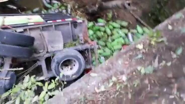 El vehículo pesado se salió de la carretera y terminó estrellándose contra un árbol cerca de un arroyo de considerable profundidad.