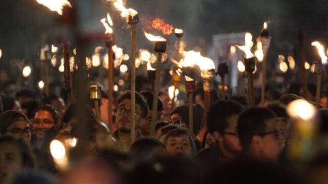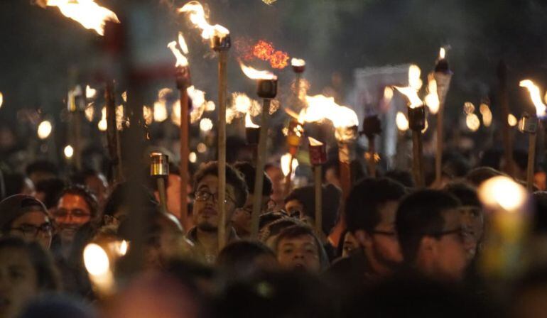 Noche de antorchas en Tunja para cerrar el paro nacional del 21 de octubre