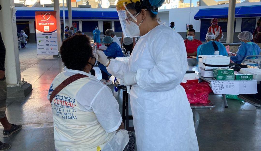 “Recibimos una solicitud de la administración de la galería del Mercado Público y decidimos irnos con todo el equipo a tomarles muestras de manera masiva, no solo a vendedores de la plaza sino también a los informales en la calle y a los empresarios del sector. En un día realizamos 1.020 pruebas PCR, de las cuales salieron positivas 114, es el 12 por ciento, lo que es un dato alto para el Mercado de Santa Marta y por lo que lo estamos identificando como un punto caliente desde el estudio epidemiológico de Covid-19”, expuso el Secretario de Salud Distrital.