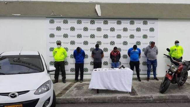 Edwin Ramón Rubiano Sánchez, apodado ‘Champeta’; Lina Marcela Grisales Rivas, alias ‘La chica’; Elkin Mauricio Valenzuela Bogolla, ‘Mao’; José Alejandro Mendieta Palacios, ‘Mendieta’; Dairo Smith Cera Hernández, ‘Samario’, y Marcos Andrés Bonilla Trujillo, conocido como ‘Choper’ fueron los detenidos a quienes los acusaron de concierto para delinquir con fines de hurto, hurto calificado y agravado, fabricación, tráfico y porte de armas de fuego y secuestro simple.