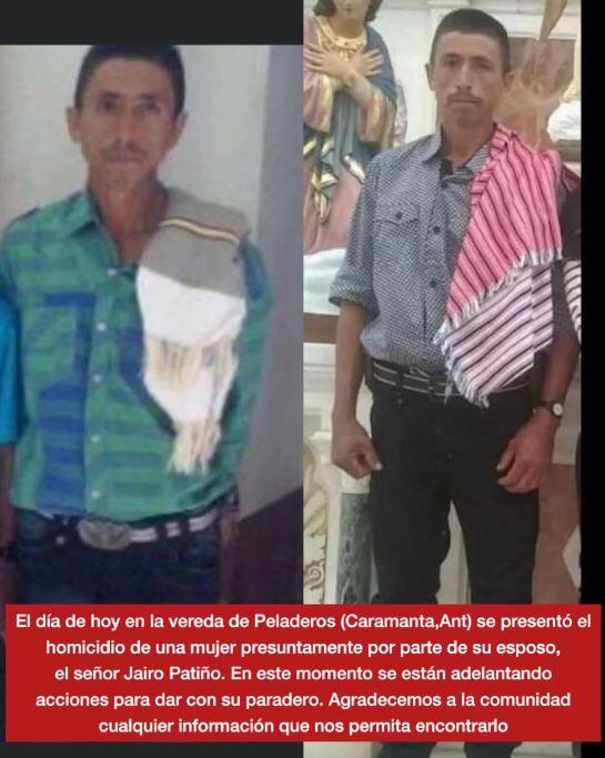 El feminicidio se ocurrió en la vereda Peladeros ubicada a unos diez minutos del área urbana. Allí durante una discusión Doris Vasco de unos 46 años aproximadamente fue asesinada con un machete, el agresor presuntamente es su pareja sentimental identificado como Jairo Patiño quien de inmediato emprendió la huida y en este momento es buscado por las autoridades.