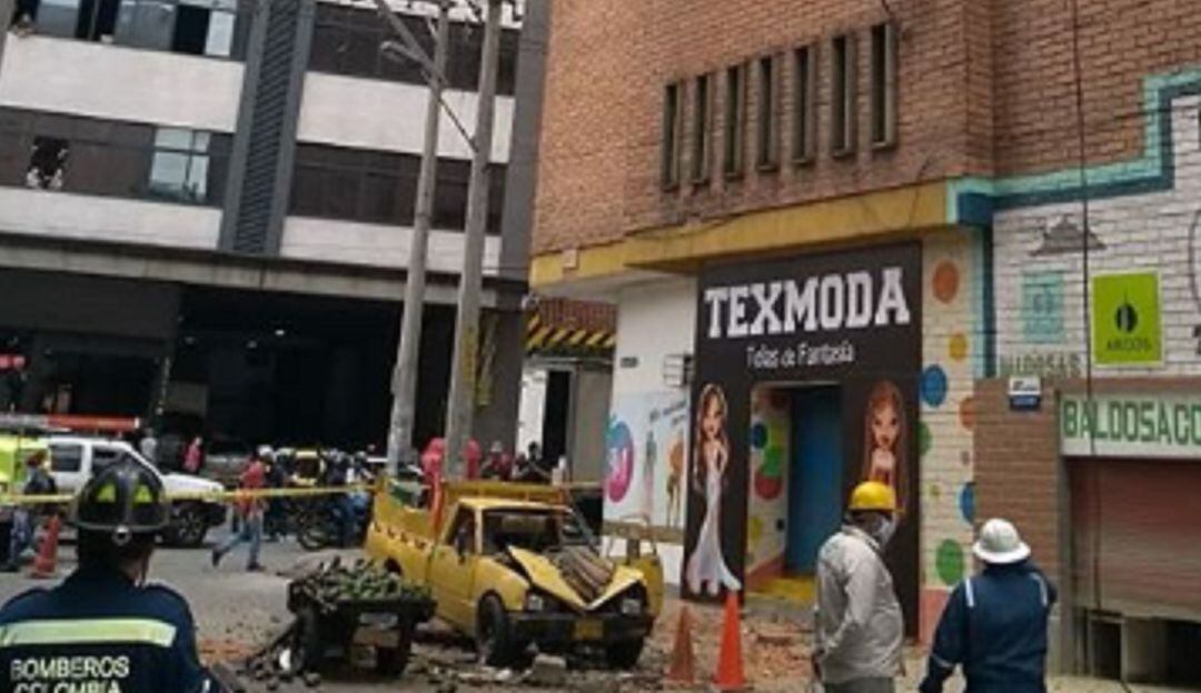 Además de impactar al vehículo, el muro cayó sobre una carretilla de aguacates de un vendedor informal.