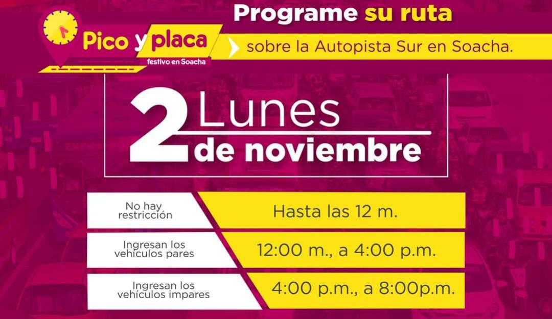 Tenga en cuenta el "Pico y placa" en Soacha por el puente festivo
