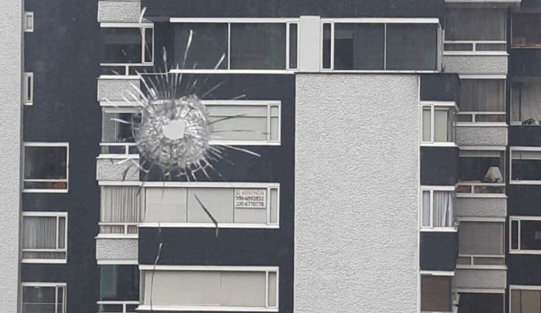 Luego del tiroteo que se presentó en la calle 87 con carrera 7A, después del robo de un celular, varios vecinos de la zona contaron que las balas impactaron las ventanas de por lo menos tres apartamentos, uno de estos proyectiles ingresó por el ventanal de la sala de la residencia de Silvia Torres.