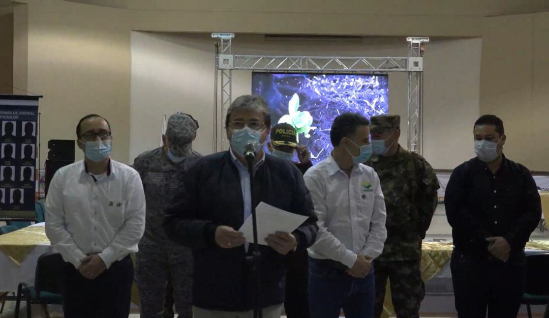 “El Ejército Nacional y la Policía Nacional desplegarán un plan de choque dirigido a erradicar definitivamente los cultivos ilícitos, destruir los laboratorios de producción de cocaína y combatir los demás eslabones de la cadena del narcotráfico. El 20 de diciembre de 2020 es la fecha límite para declarar al oriente antioqueño como región libre de cultivos ilícitos”, manifestó el ministro.