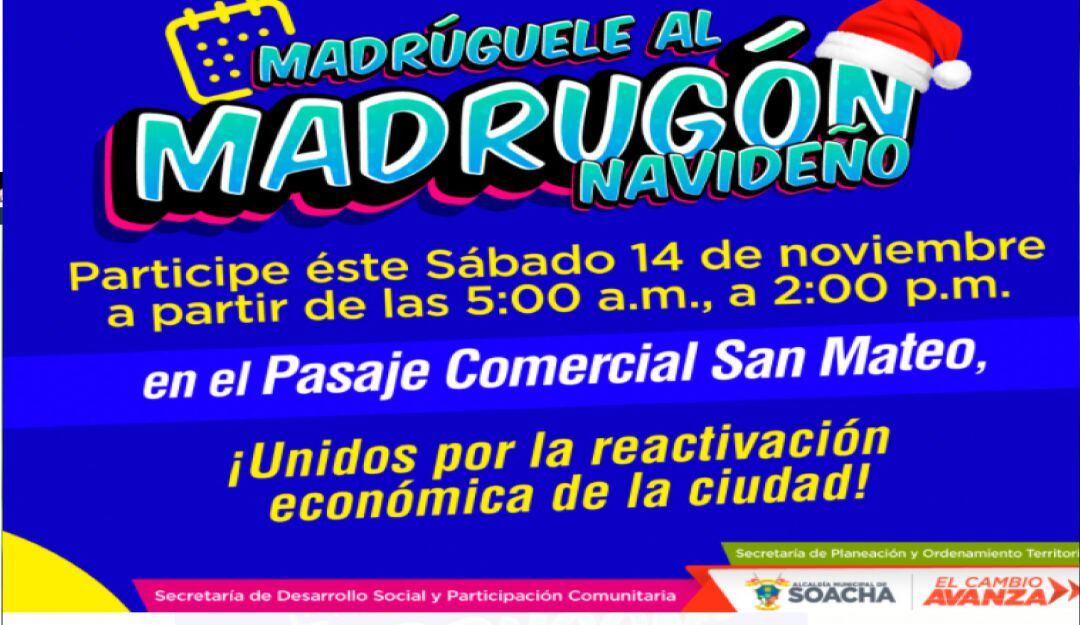 Desde la alcaldía de Soacha, Cundinamarca, dieron a conocer que esta iniciativa contará con la participación de más de 150 mujeres víctimas del conflicto armado, cabezas de hogar o que hayan tenido algún tipo de violencia y que cuenten con algún emprendimiento. en este madrugón navideño, los comerciantes ofrecerán productos gastronómicos, artesanías, adornos, prendas de vestir y accesorios, entre otros.