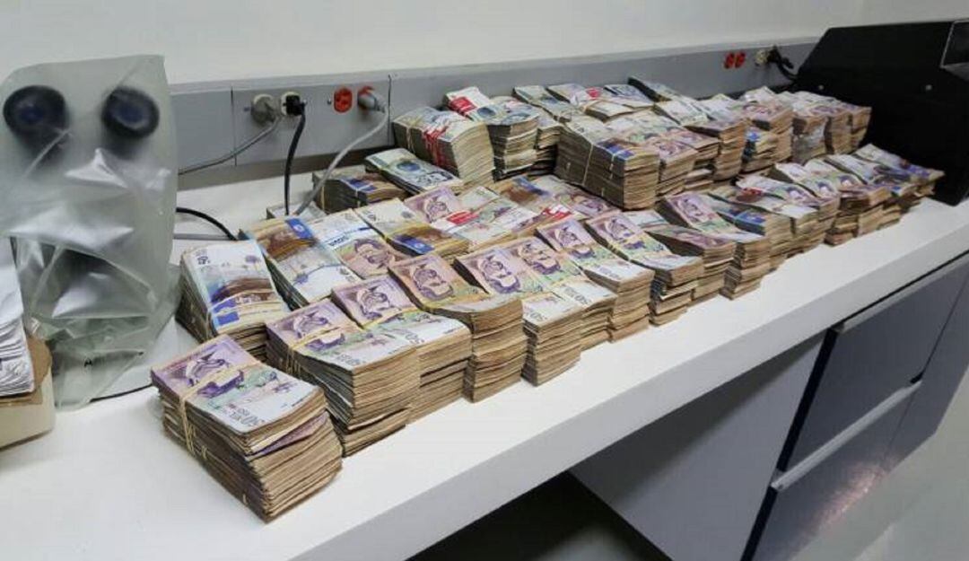 El dinero encontrado estaba en cajas y, de acuerdo con las investigaciones, correspondería a los pagos recibidos por el envío de droga a países de Centroamérica y Estados Unidos.