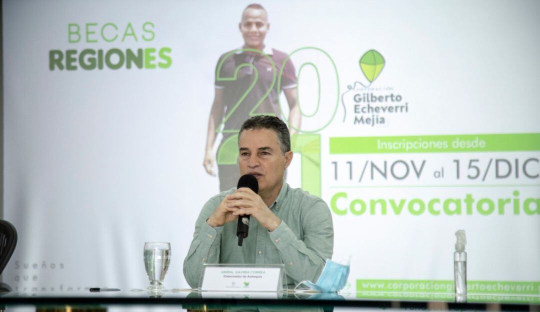 Becas Regiones, la apuesta del gobernador de Antioquia, Aníbal Gaviria Correa, destacó el monto de esta nueva convocatoria, la cual tendrá una inversión de 2.950 millones de pesos.