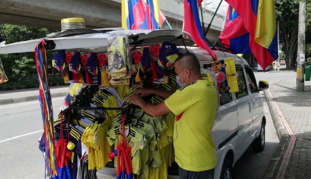 Pocas camisetas y banderas de la Selección Colombia se ven en las calles de Medellín. A diferencia de otras jornadas donde era común ver ventas de estos artículos, hoy no lo fue. La pandemia y las restricciones decretadas para prevenir el aumento del coronavirus impactaron.