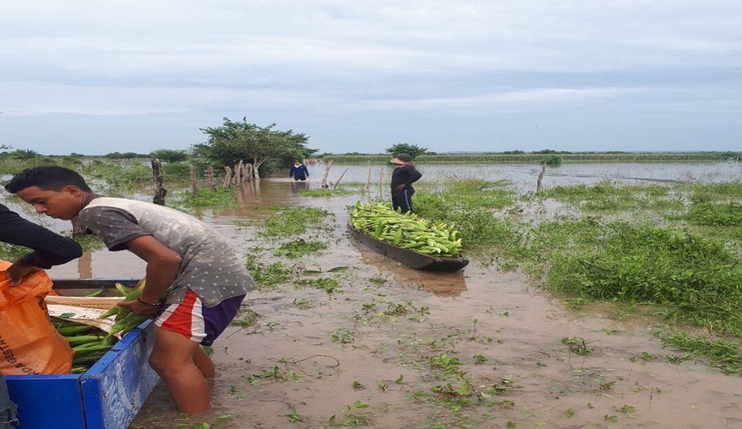 Blas Calvo, uno de los campesinos afectados, afirmó que en canos intentaron salvar una mínima parte de la cosecha porque el agua acabó con las siembras de maíz, yuca, ahuyama y melón.