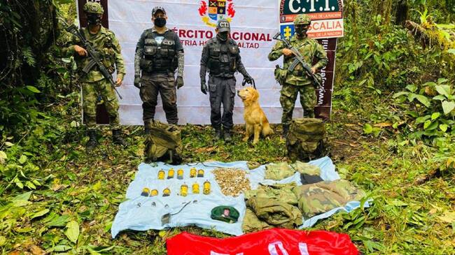 En el lugar hallaron 976 cartuchos, 11 minas antipersona, 100 detonadores eléctricos, tres pantalones camuflados pixelados, una bandera del Eln y un radio de comunicaciones.