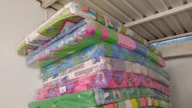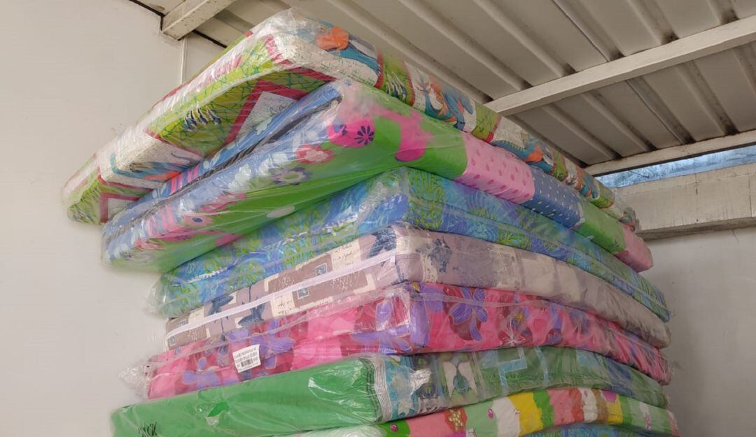 Estas donaciones en especie son en su mayoría mercados y colchonetas. También hay botellas con agua y desayunos