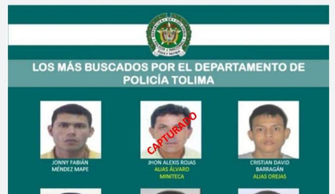 Del cartel de los 10 más buscados 7 personas ya han sido detenidas por las autoridades y tienen medidas de aseguramiento en centros carcelarios.