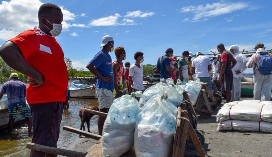 Cuatro lanchas cargadas de alimentos y agua potable llegaron este viernes 20 de noviembre a Boca Cerrada, el corregimiento de San Onofre, inundado por coletazos del huracán IOTA.