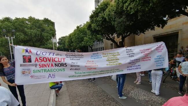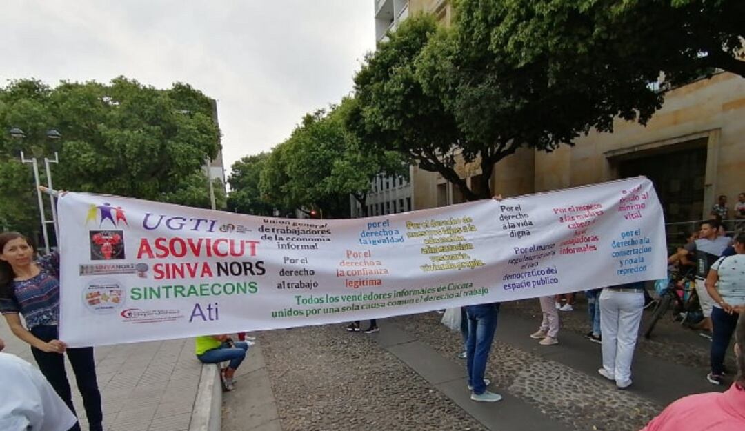 Un grupo de vendedores informales que durante mucho tiempo han trabajado en las inmediaciones del Parque Santander en el centro de Cúcuta, realizaron una protesta pidiendo a la administración municipal que defina las políticas de reubicación.