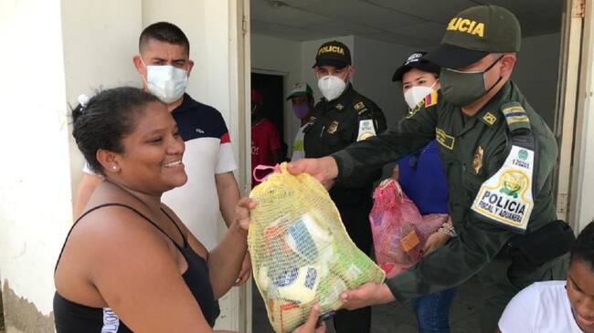 Con un gesto de solidaridad y apoyo a las familias en condición de vulnerabilidad de la ciudad de Cartagena que se han visto afectadas por el paso de la tormenta tropical IOTA y la temporada de lluvias, la Policía Fiscal y Aduanera en coordinación interinstitucional con la Dirección de Impuestos y Aduanas Nacionales (DIAN) y el gremio de comerciantes del sector de Bazurto, visitó el corregimiento La Boquilla, sector Marlinda, con el propósito de brindar ayuda con mercados de primera necesidad a las familias más necesitadas, quienes en medio de esta ola invernal, necesitan de todo nuestro apoyo.