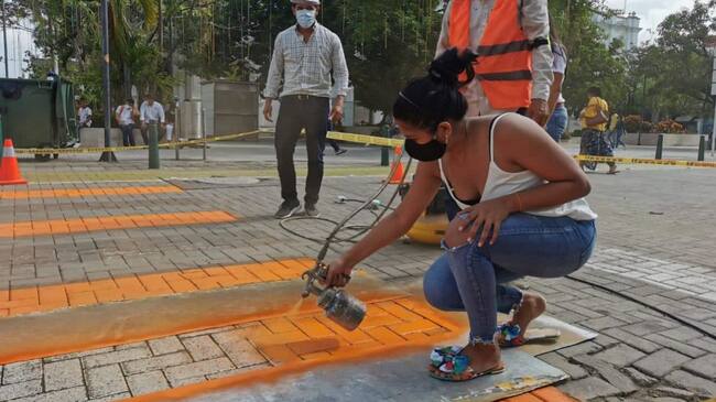La cebra ubicada en la calle 27 con carrera tercera fue pintada de color naranja, como símbolo de espacio por donde pueden transitar seguras.