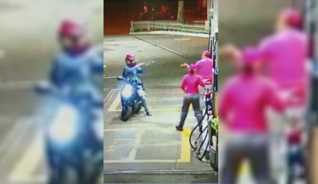 Un video de seguridad ha registrado cómo los trabajadores del turno de la noche son asaltados en menos de 15 segundos, por un hombre que se moviliza en una motocicleta, mientras los intimida con un arma.
