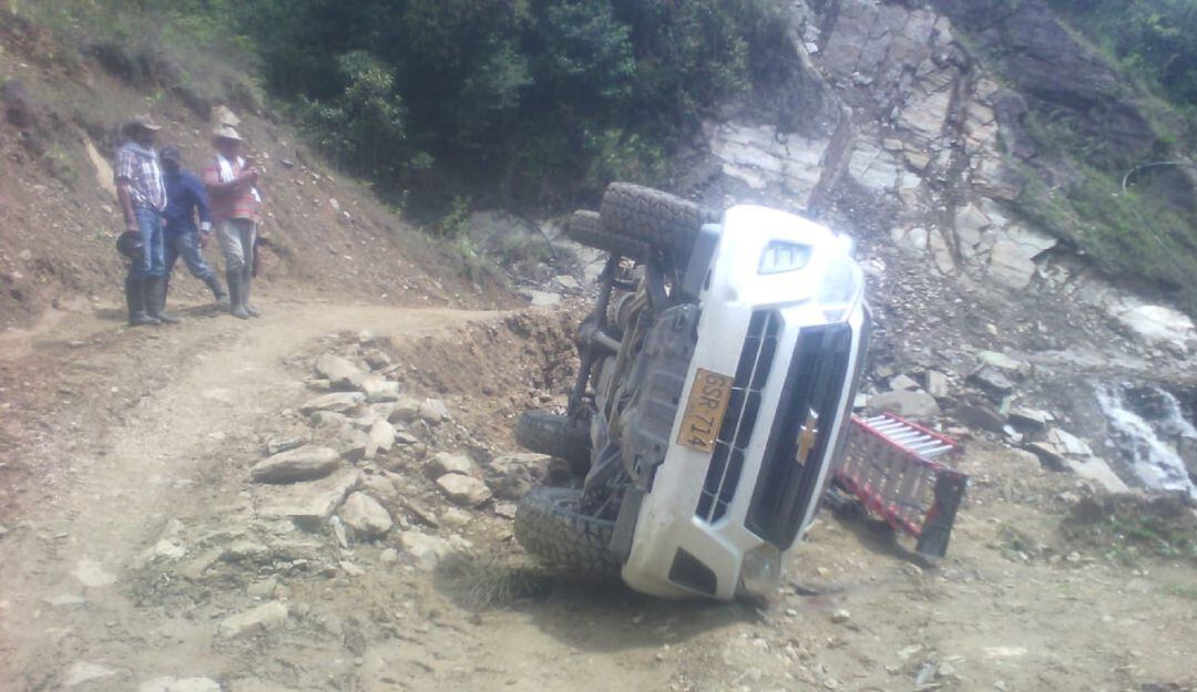 Walter Martínez líder del sector, manifestó que es preocupante la situación de la vía, lo que originó el siniestro que compromete una camioneta de placa GRS 714, por fortuna en el hecho no dejo personas lesionadas.