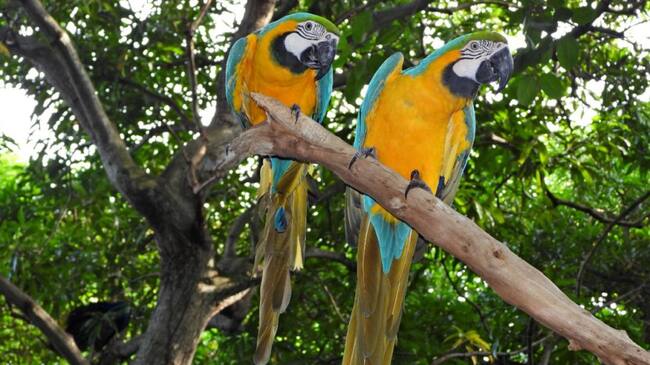 La pareja de guacamayas pertenece a la especie azul amarilla (Ara ararauna) que hacen parte del proyecto “Las guacamayas vuelan el Distrito de Cartagena”, proyecto liderado por la sociedad portuaria de Cartagena y Port Oasis Ecopark.