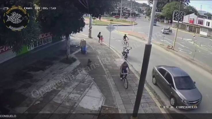 El percance se presentó pasadas las 9:00 en la glorieta del barrio Villamil. En una cámara de seguridad del sector se ve cuando el motociclista es arrollado por un carro de color girs que huyó.