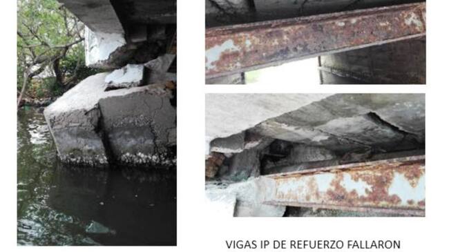 “Mediante inspección en sitio de la estructura se puede decir que está muy afectada su capacidad para resistir las cargas de servicio actuales y futuras, ya que más del 80% de la misma presenta un nivel de daño SEVERO, y se puede presentar un inminente colapso, lo que no pone en riesgo las vidas humadas. Es claro que el sistema estructural del puente presenta daños importantes los cuales no ameritan realizar reparaciones ni apuntalamiento provisionales, si completo del puente.”