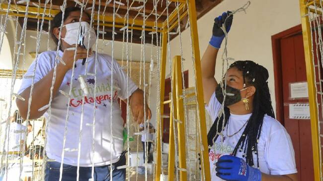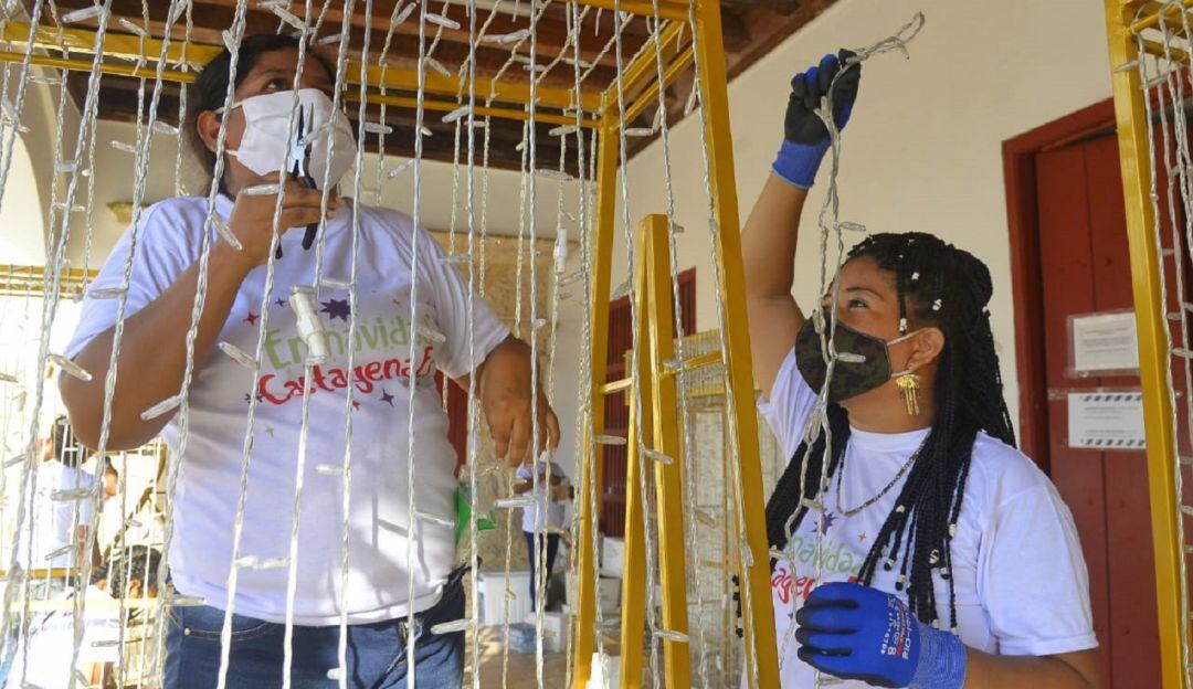 Unas 30 madres cabeza de hogar de distintos barrios de la ciudad, son las protagonistas durante el montaje del alumbrado Navideño de la heroica, que este año, bajo el concepto #CartagenaEs, por primera vez incluye un componente social.